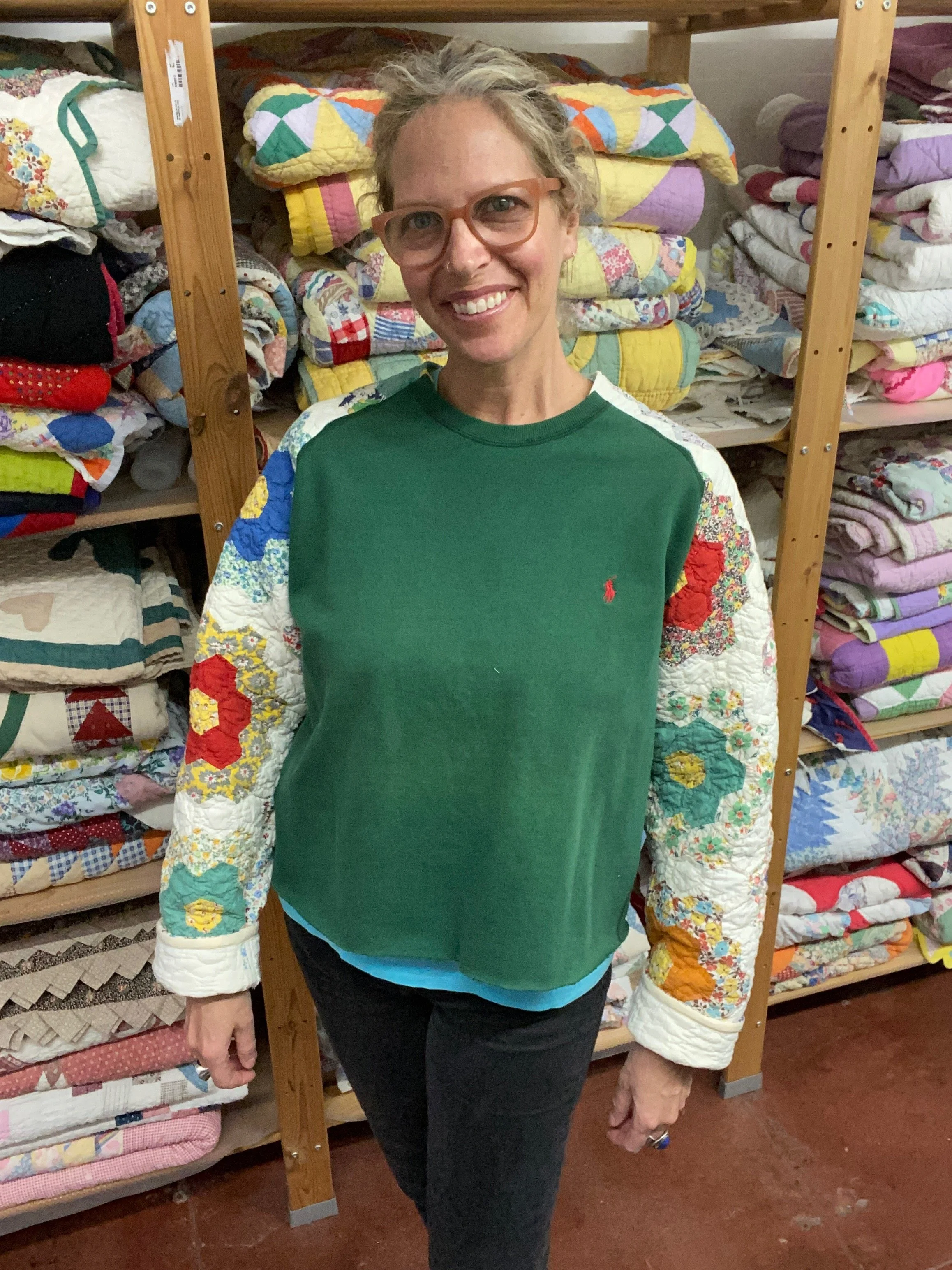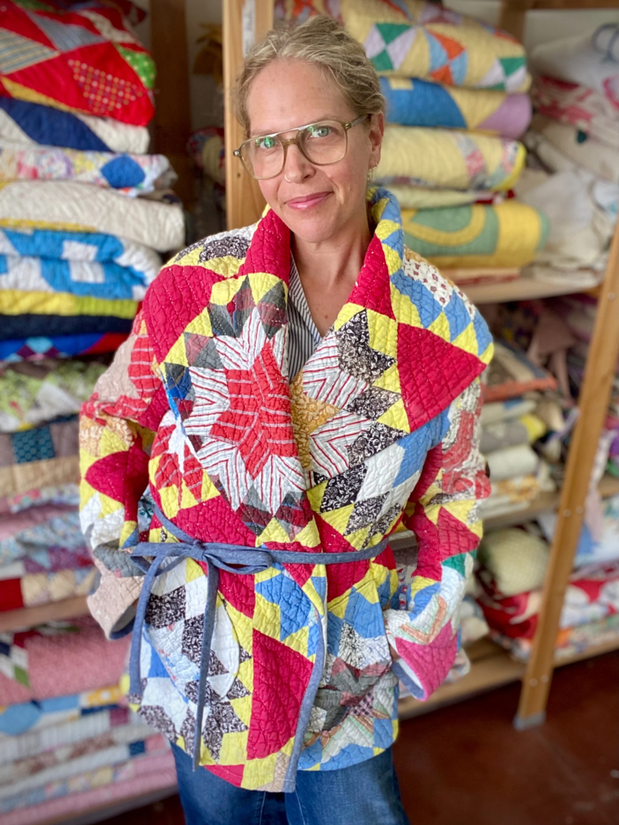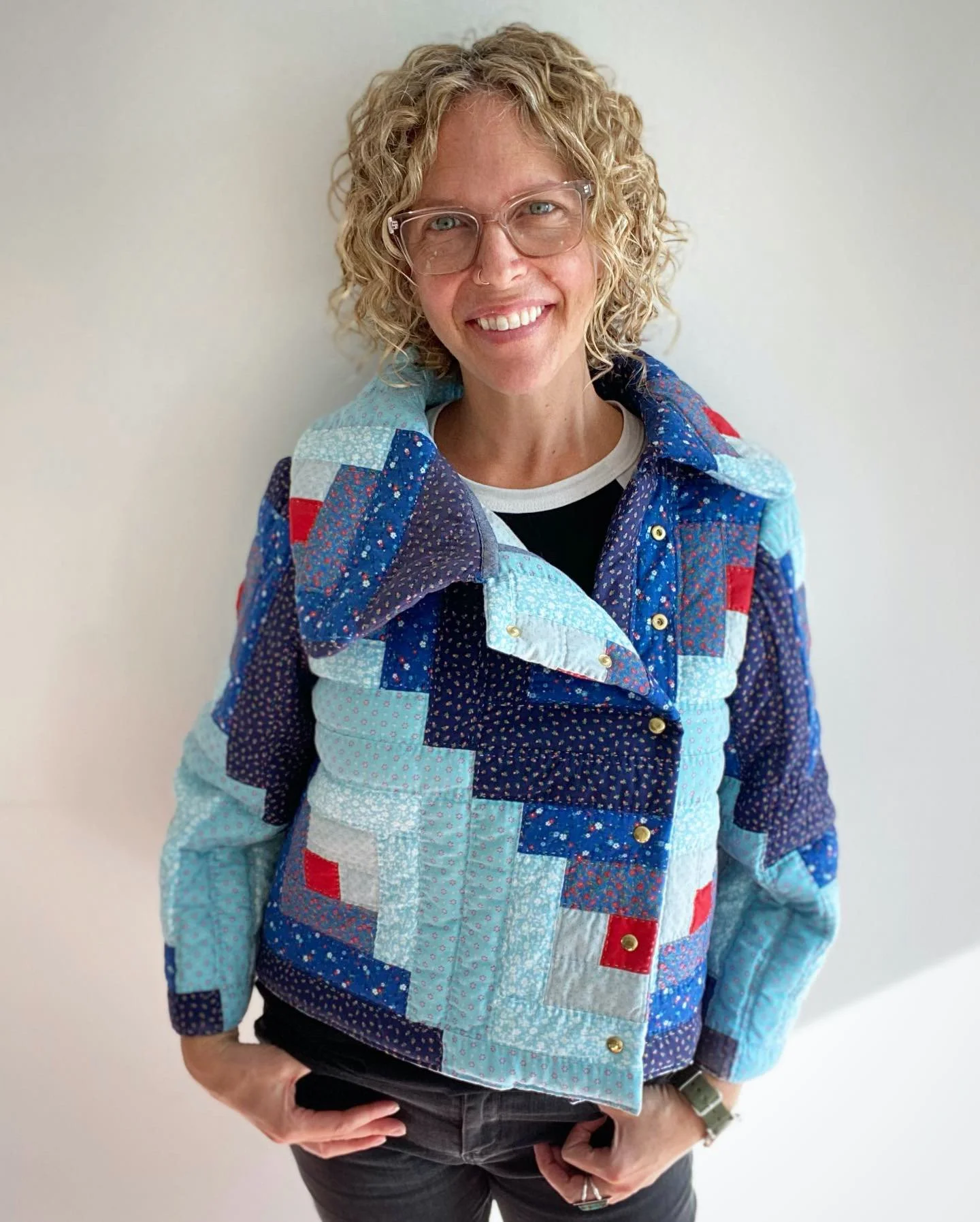 JILLIE P is a line of one of a kind clothing and accessories created with vintage quilts. Modern shape and line are my filters, and each vintage quilt I find is re-imagined as an upcycled piece of wearable art. Combining the warmth and comfort of a well-worn quilt with unique, trend-forward silhouettes, the JILLIE P collection contains exclusively one-of-a-kind pieces, handmade by me in my studio in downtown Los Angeles. Each individual quilt is unique, and supplies only a small amount of material, therefore no two items are exactly alike - the ultimate limited edition.